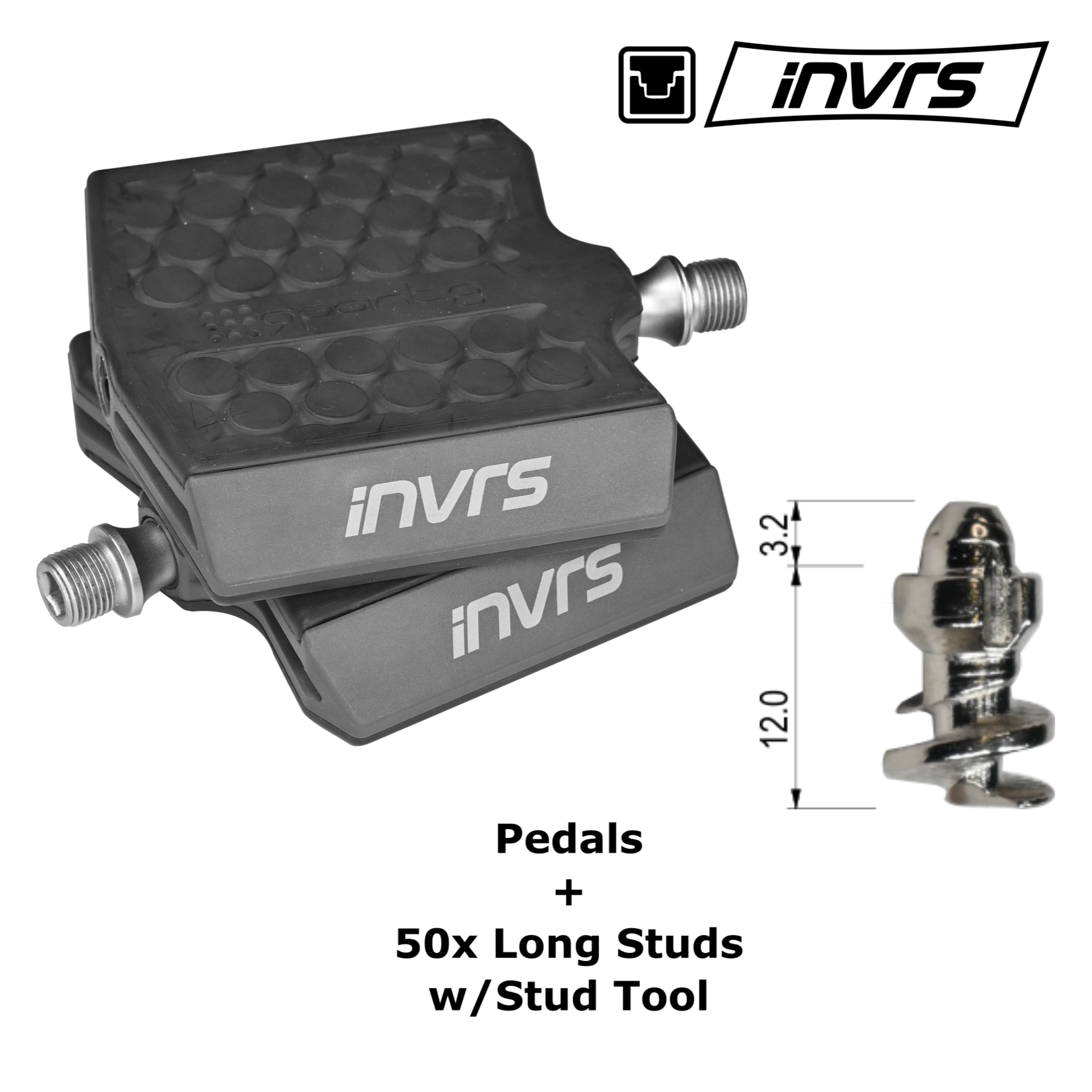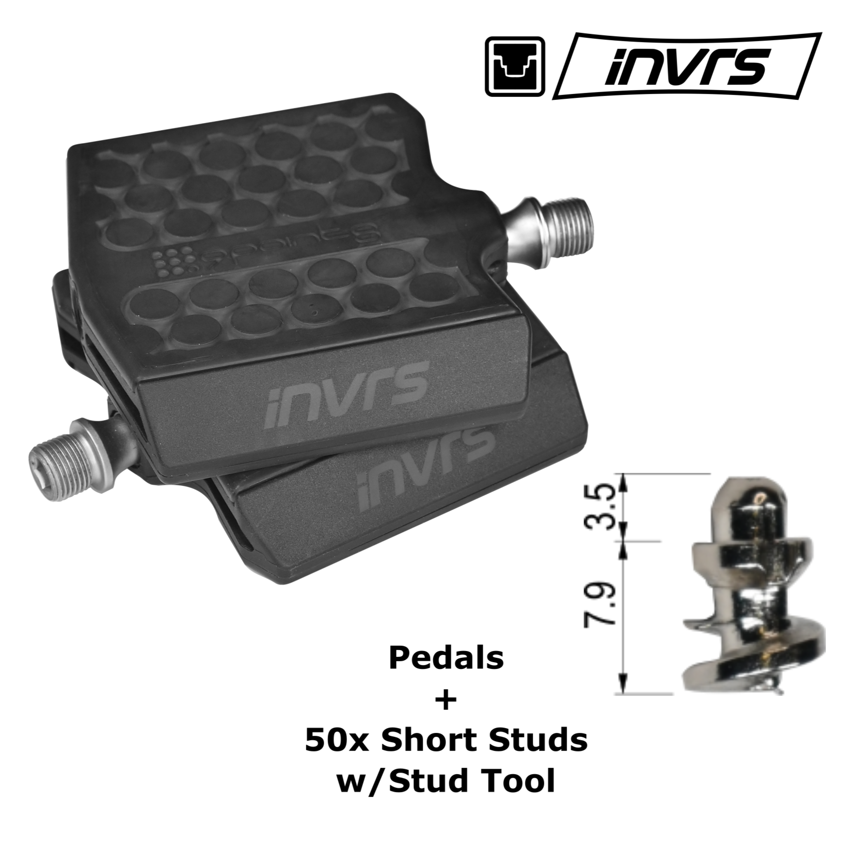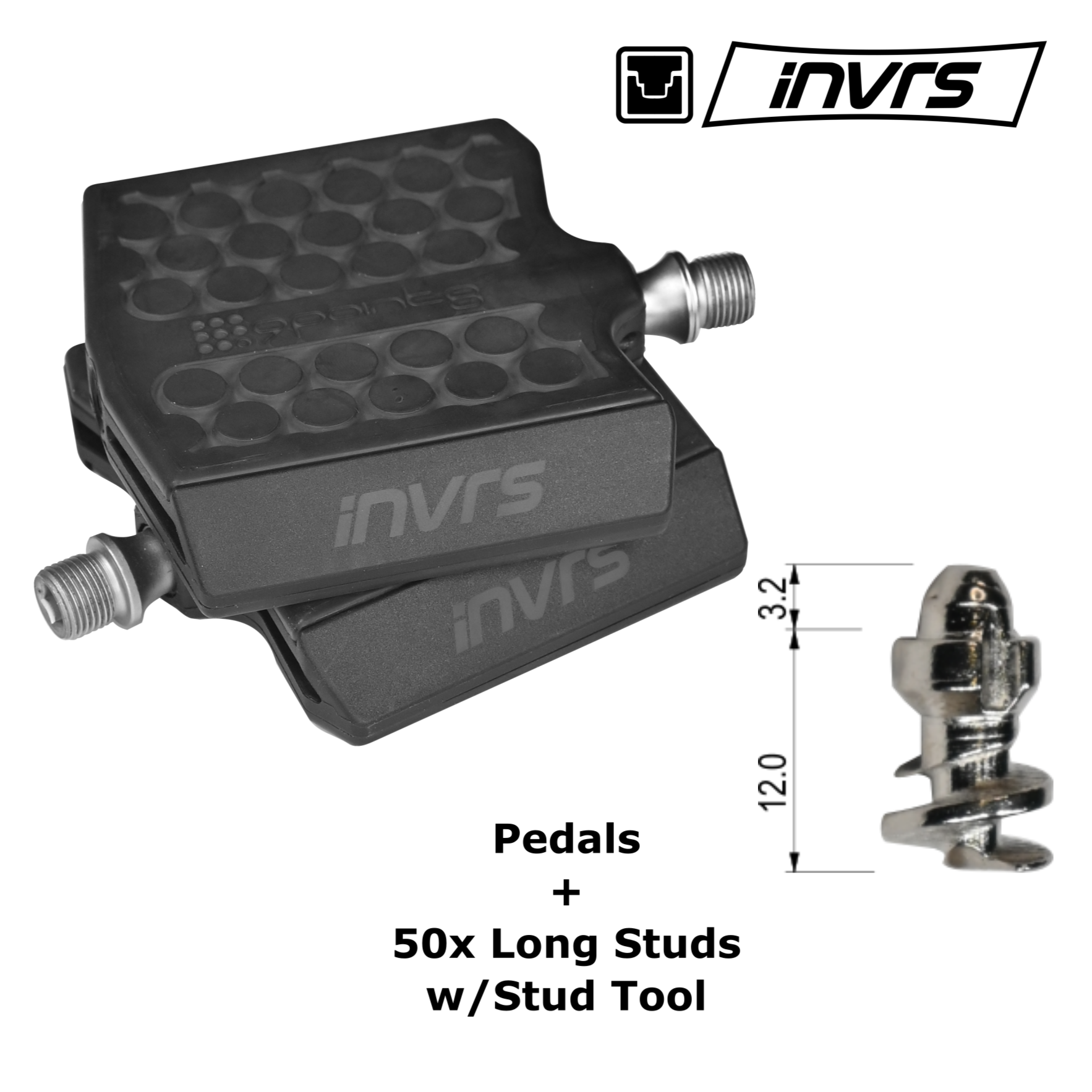 Introducing our latest innovation; the iNVRS pedal system (patent pending). As the name implies, we’ve taken the design of traditional spiked flat pedals, and turned them upside down! The spikes, or studs, have been moved from the pedal, to the sole of your riding shoes.